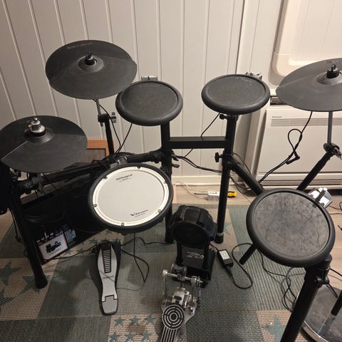 Selger derfor et pent brukt Yamaha DTX400K elektronisk trommesett – perfekt for nybegynnere, entusiaster eller deg som faktisk har rytme i kroppen. Kompakt, stillegående (med hodetelefoner) og morsomt å spille på.