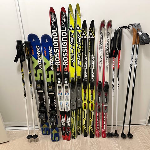 Alle skiene har riper, men de fungerer bra.