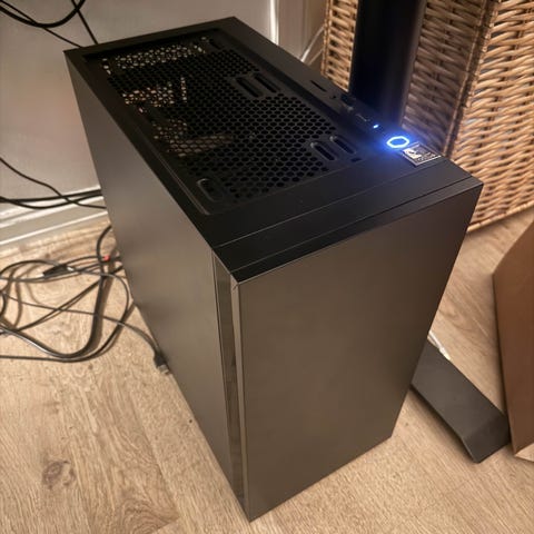 HP Omen 25L I7-14F stasjonær PC med Intel Core i7-prosessor, 16 GB RAM, 2 TB lagringsplass og NVIDIA GeForce RTX 4060 Ti grafikkort.