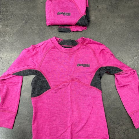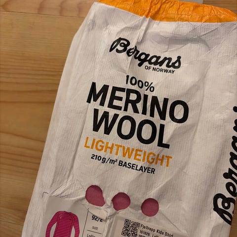 Bergans Ull genser for barn i størrelse 92, designet for jenter. Genseren har rosa farge med stripemønster og er laget av ullmateriale.