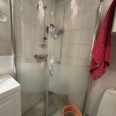 Dusjhjørne med glassdører og krom detaljer