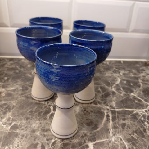 Vinmugge + 6 x vinglass i keramikk av kunstneren Kari Brovold Hagen.