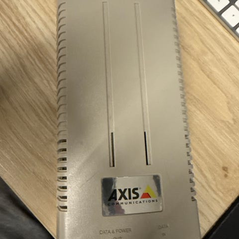 Netgear WiFi Extender med innebygd strømkontakt og to eksterne antenner. Enheten kobles direkte i stikkontakt og har en Ethernet-port for kablet tilkobling. Designet for å forbedre trådløst nettverkssignal i hjemmet eller kontoret.
