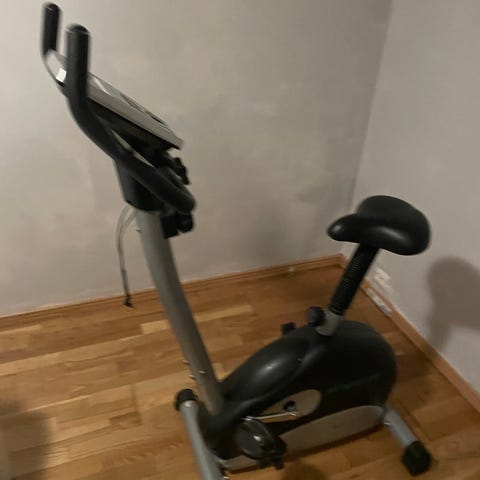 Spinning sykkel med justerbart sete og styre. Sykkelen er utstyrt med pedaler og har en solid ramme. Egnet for innendørs trening.