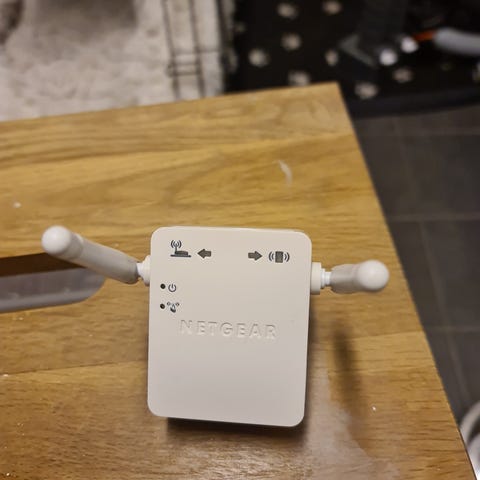 Asus RT-AX58U router med fire eksterne antenner. Støtter Wifi 6 med støtte for opptil 3000 Mb/s i overføringshastighet. Brukt noen år, fungerer som normalt.