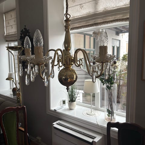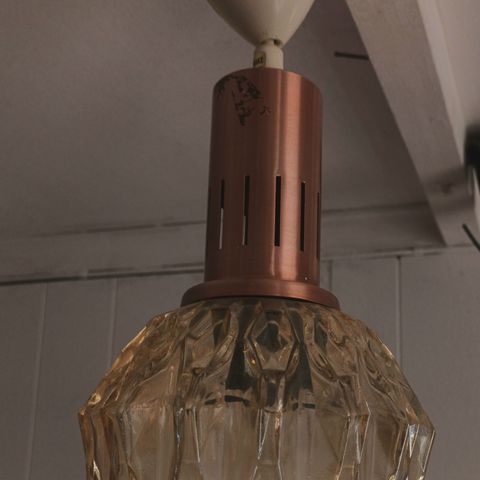 Hel og pen taklampe med oppheng I messing