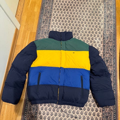 Har en nesten ny, veldig lite brukt Tommy Hilfiger Dunjakke til salgs. Den er sort, med en herlig varm krave og hette, som gjør at man holder seg god og varm i kulden. Størrelse M, jeg er 176cm og 75 kilo - passer perfekt. Jakken ble kjøpt i England for et år siden - kostet 249 GBP som tilsvarer ca 3300 Norske kroner. Kan selvsagt sendes om ønskelig.