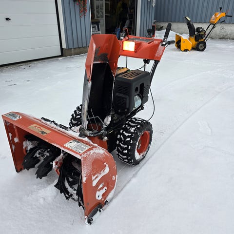 Har overhalt en god gammel Snapper 824, som nå har flere år igjen med snøfresing foran seg. Nye reimer, olje, plugg, forgasser, og girkassa er smurt opp og går fint i alle girene. Kaster veldig godt!! Prøvd den i kveld, og blei overrasket over kastelengden! Montert kjettinger så den klatrer godt i motbakker.