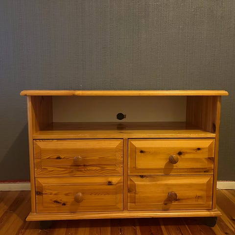 En meget fin og pent brukt TV-benk selges. Gode løsninger for oppbevaring inni med hyller og skuff. Push-open løsning på fronten.