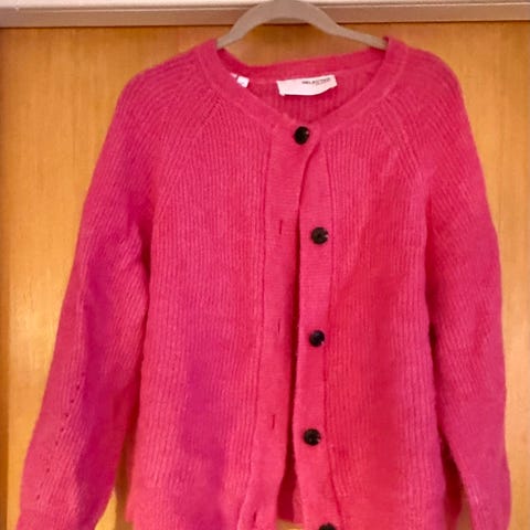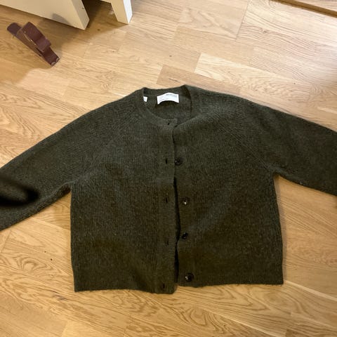 Pent brukt brunmelert Cardigan fra Selected Femme, modell Lulu. Str L. Ullblanding.
