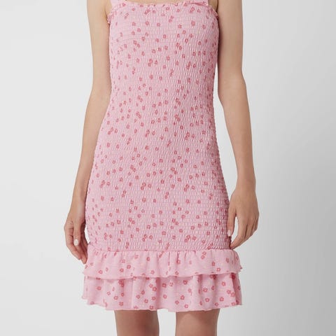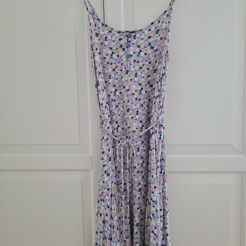 Søt og anvendelig kjole fra Pieces med strikk i livet for god passform. Gul med blomstermønster.