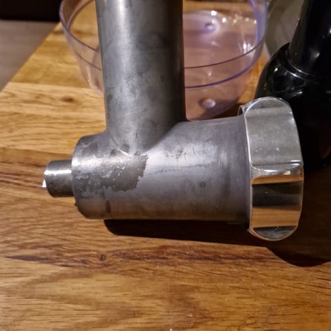 Kjøttkvern til Kenwood Major selges. Den fulgte med når kjøkkenmaskina ble kjøpt for ca 20 år siden, men den har aldri vært brukt.