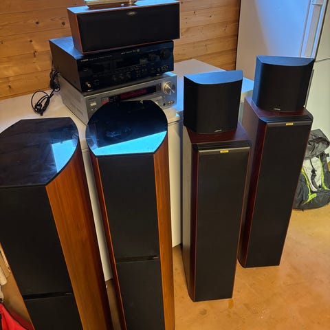 Selger et par med legendariske JBL 8340 surroundhøyttalere. Dette er profesjonelt kinoutstyr som gir en helt annen dynamikk og lydtrykk enn vanlige hjemmekino høyttalere.