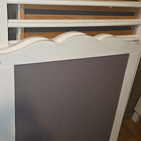 Seng med sprinkelbeskytter og madrass selges samlet.