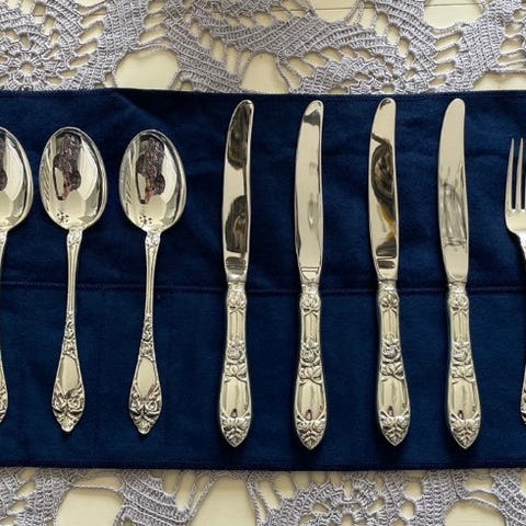 Opphøiet rose sølvbestikk skjeer 6 stk