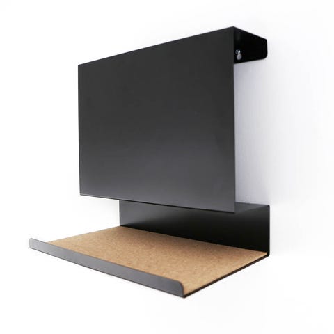 Noe bruksmerker. Fungerer som den skal. Sort hylle med metallstenger
