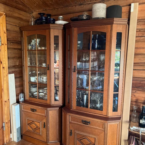 Pent brukt hvitt vitrineskap med glassdører selges.