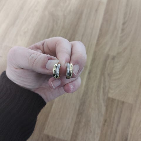 Selger en fin gullbelagt sølvring i 925s med fine grønne ukjente edelstener.