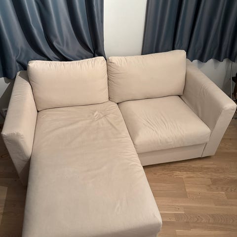 Sofa selges pga. flytting mot henting. En fin IKEA-sofa i VIMLE-serien. Ny pris: 13 990 NOK. Kjøpt i 2022. Det er noen bruksmerker, se bilder. Pris kan diskuteres ved rask avklaring og henting.