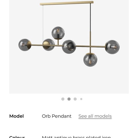 Bolia orb taklampe selges pga flytting. Følger med 6 stykker teardrop lyspærer.