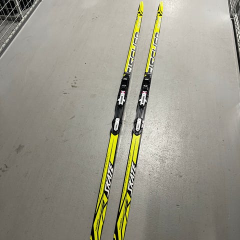 Fischer Crown Skate langrennsski med lengde 195 cm i fargene hvit og blå. Skiene har bindinger og er egnet for skøyting. Skiene mm bør hentes.