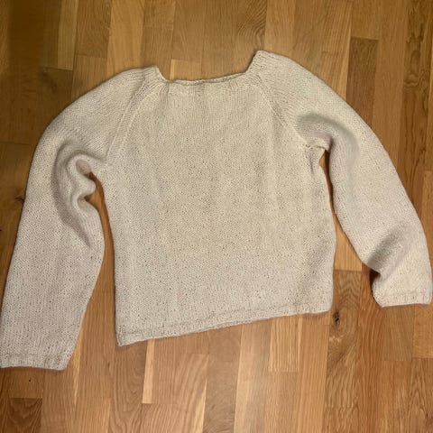 Hjemmestrikket “Julia-genser” strikket i deilig mohair-garn. Selges da den ikke brukes nok. Størrelse m (oversized) med 3/4 ermer.