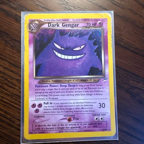 Selger Dark Crobat fra Neo Destiny, et populært Neo-sett fra Wizards of the Coast-perioden.