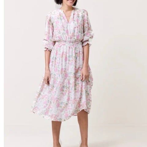 Nydelig sommerkjole i lekre farger selges. Brukt 2 ganger. Underkjole kommer med og knyting i livet gjør at du får frem formene dine.