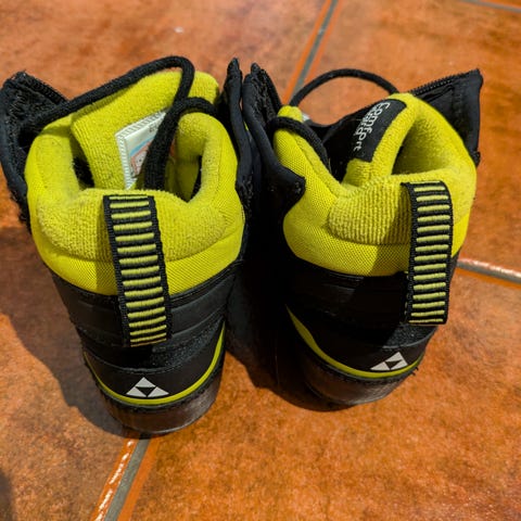 Fischer langrennssko i størrelse EU 32 med svart og gul farge.