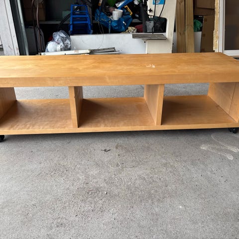 Fin tv benk selges billig. Litt slitt på midten på bordplaten, men ikke veldig synlig. Kan evt pusses litt og gå over med et lite malingsstrøk, men det er ubetydelig lite. Må hentes. Lett å ta ut, men må være to, da den er litt tung.