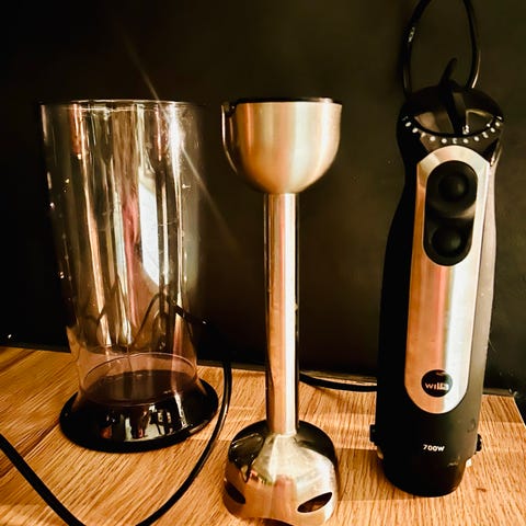 Wilfa stavmikser med 750 watt effekt i svart og stål. Inkluderer avtakbar miksestav i rustfritt stål og hakkerboks i plast. Utstyrt med to knapper for hastighetskontroll og justerbar hastighet via dreieknapp. Passer til miksing og hakking av matvarer.