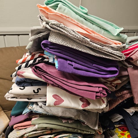 Ca 1,8 kg små og mellomstore stoffbiter. Isoli, jersey, tyll, ribb og french terry, selges til fastpris 100.- kjøper betaler porto eller henter :)