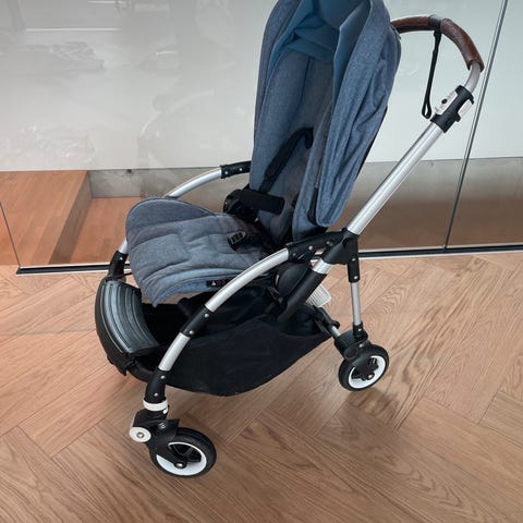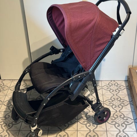 Pent brukt Bugaboo Bee 5 selges. Følger med sommerkallesje (vist på bilde). Orginal kallesje følger også med. Nydelig grå-beige farge. Følger også med babybag-pose slik at vognen kan brukes til nyfødte. Kan vendes både fremovervendt og bakovervendt. Har også bilstoladaptere som kan følge med. Passer til noen Britax bilstoler og besafe tror jeg. Originalt regntrekk følger også med, og ett ekstra regntrekk fra yngri.