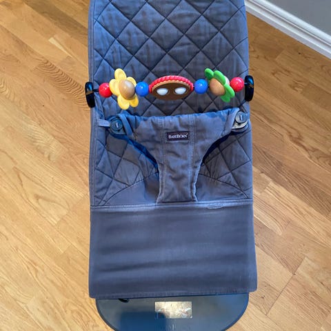 Babybjörn Barnevippestol designet for barn. Stolen har en myk og komfortabel sitteflate med et lekent dekorativt element foran. Egnet for bruk hjemme som en trygg og praktisk stol for små barn.