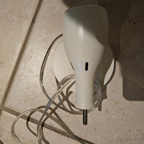 Lampen ligger ubrukt i originalesken. Lampen har vært ute av esken, men ble aldri montert da vi gikk for annen løsning.