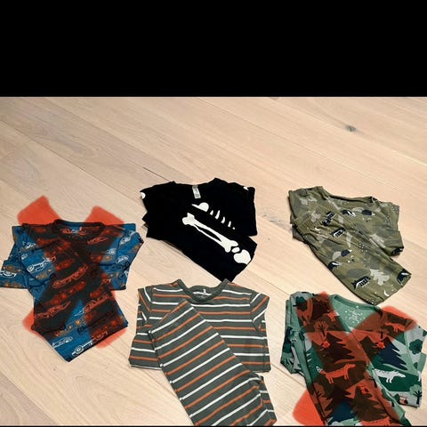 2 pysjer i str 104 selges samlet. Pysjen fra Lilleba er meget pent brukt. Pysjen fra Polarn har noe slitasje på mansjettene
