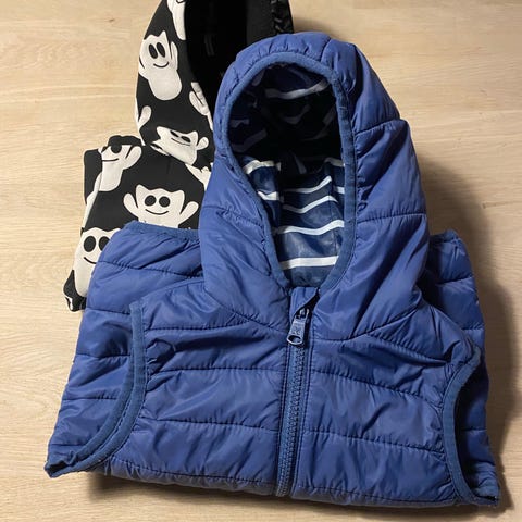 Råtøff og lite brukt skalljakke og matchende fleecejakke fra H&M str. 92. Selges samlet for kr. 150. Matchende lue følger med kjøpet. Det står at luen er større størrelse, men jeg brukte alle 3 delene som et sett til min gutt. Røykfritt og dyrefritt. Kan hentes i Trondheim sentrum eller sendes.