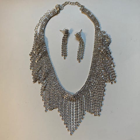 Smykkesett, øredobber og halskjede. Sølv forgylt og glass
