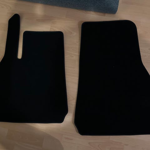 Pent brukte Tesla Y gulvmatter/allværsmatter, består av 3 deler som dekker fører-, passasjer- og baksetet. Designet for å beskytte bilens gulv mot smuss og væske. (passer ikke Juniper)