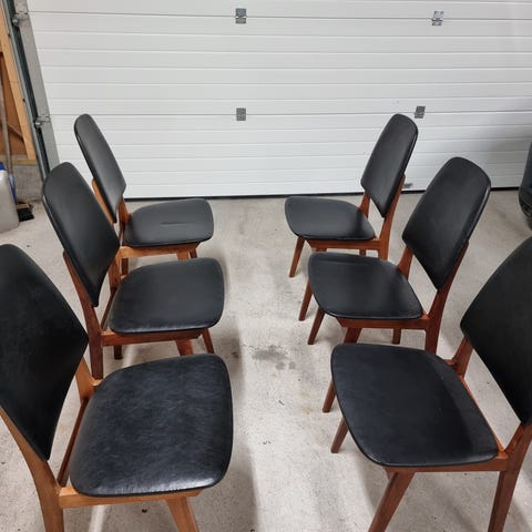 Spisegruppen trenger litt kjærlighet med olje, men er ellers i god stand.