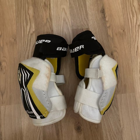 Bauer ishockey albuebeskyttere i hvit farge. Designet for beskyttelse under ishockeyspill.