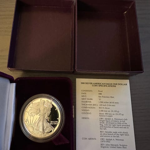 1 oz 1990 Silver Eagle sølvmynt til salgs.