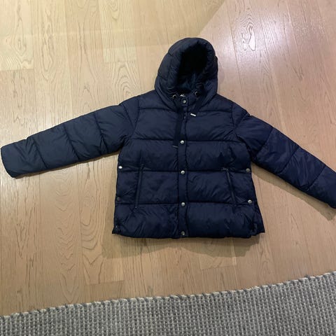 Fint brukt ,veldig praktisk for den voksende magen som du kan utvide jakken med side glidlås.