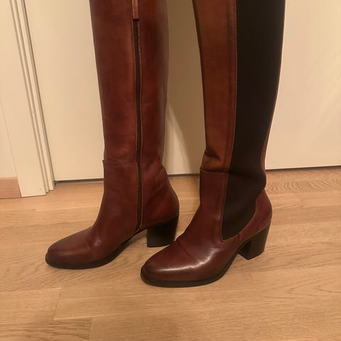 Tamaris støvler i størrelse 39, brun farge. Støvlene har glidelås og er foret med et mykt materiale for varme og komfort. Går litt av i materialet under glidelås. Noe smal og 38,5-39 i størrelsen