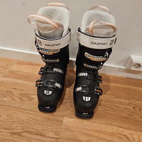 Rossignol ski støvler i størrelse 41, gul farge. Støvlene har flere metallspenner for justering og sikker passform.
