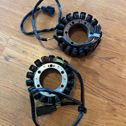 Har en ny starter ferdig klargjort med varmedeksel ferdig påmontert. Det gamle dekslet må kappes og fester flyttes for å passe ny starter.