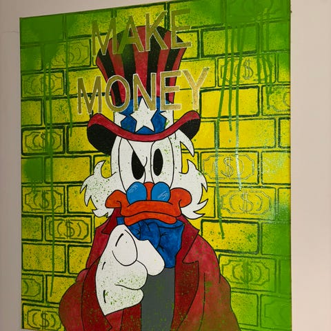 Motivet er en rå og moderne street/pop-art-tolkning av Bugs Bunny, malt med sterke kontraster, graffiti-elementer og drypp som gir bildet et urbant og edgy uttrykk.