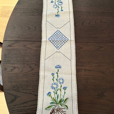Vakker løper i lin. Håndbrodert. Kan sendes med posten (Norgespakke/postnord).