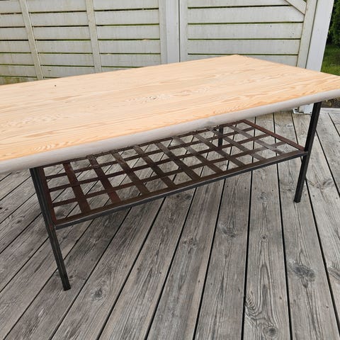 Ukjent opprinnelse, kjøpt brukt. To hyller på ene langsiden. Må hentes på Jessheim.