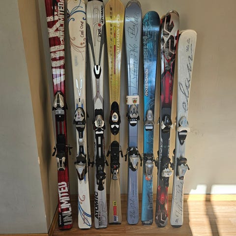 Godt brukte men fullt brukbare ski. Mye er gjort hvis de får seg en liten prepp (glider) på såla. Skia er ca 129cm.
